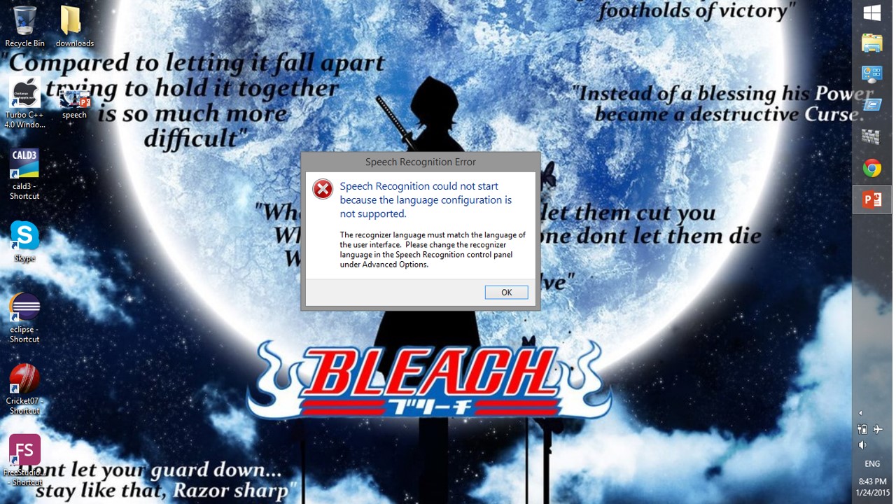 The most common bug in windows 8 and later versions is the speech recognition error