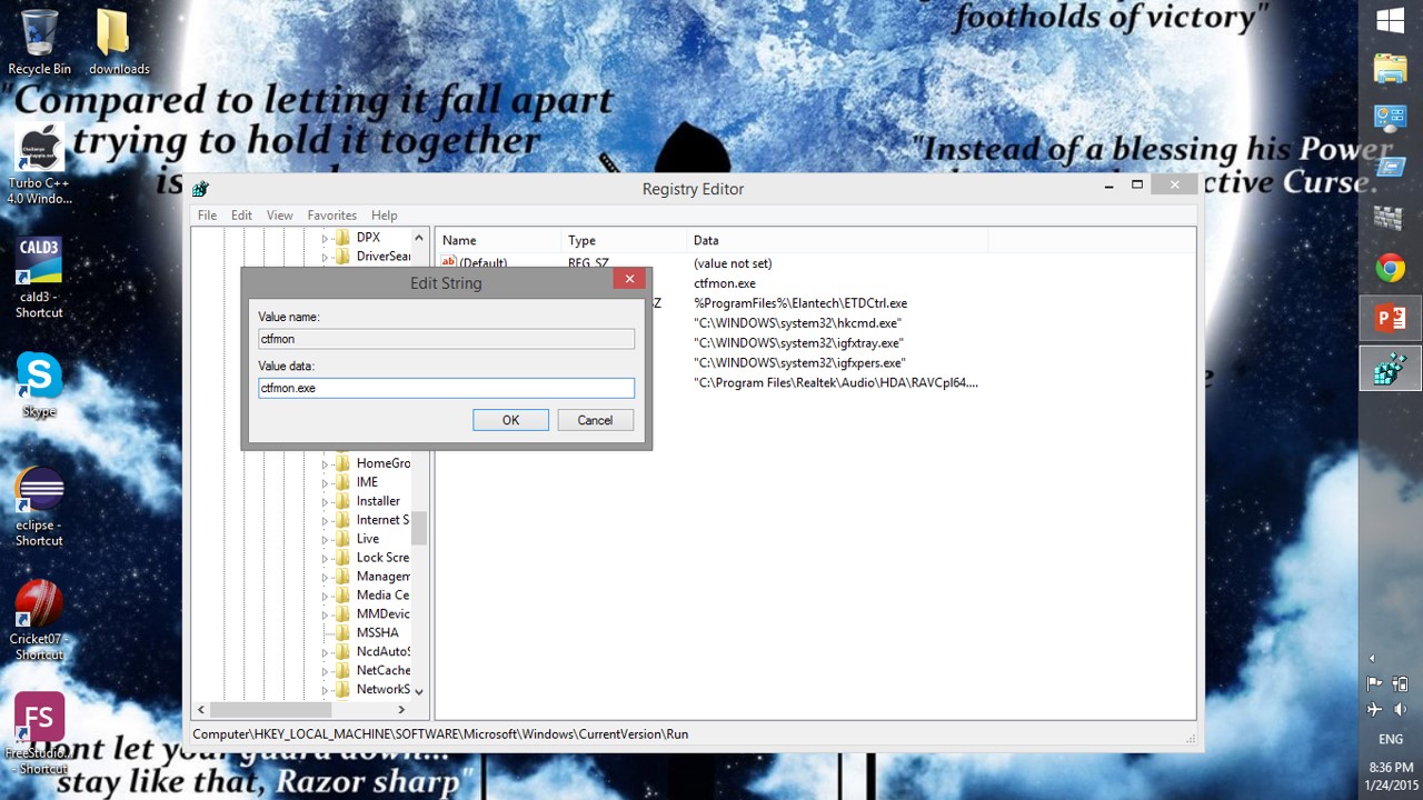 Step 4: Now enter name as “ctfmon” and value as “ctfmon.exe” and then close regedit and restart your system