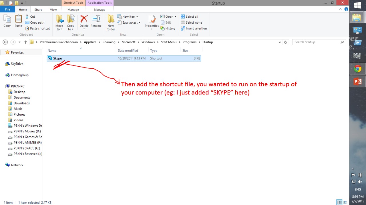 Step 3: Now, copy the shortcut of the application you wanted on the startup and paste it in the folder