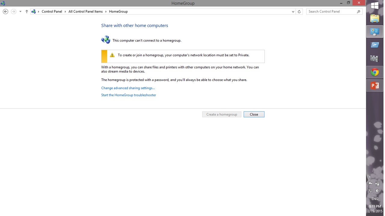 Step 3: Go to “HOMEGROUP” in the new window displayed