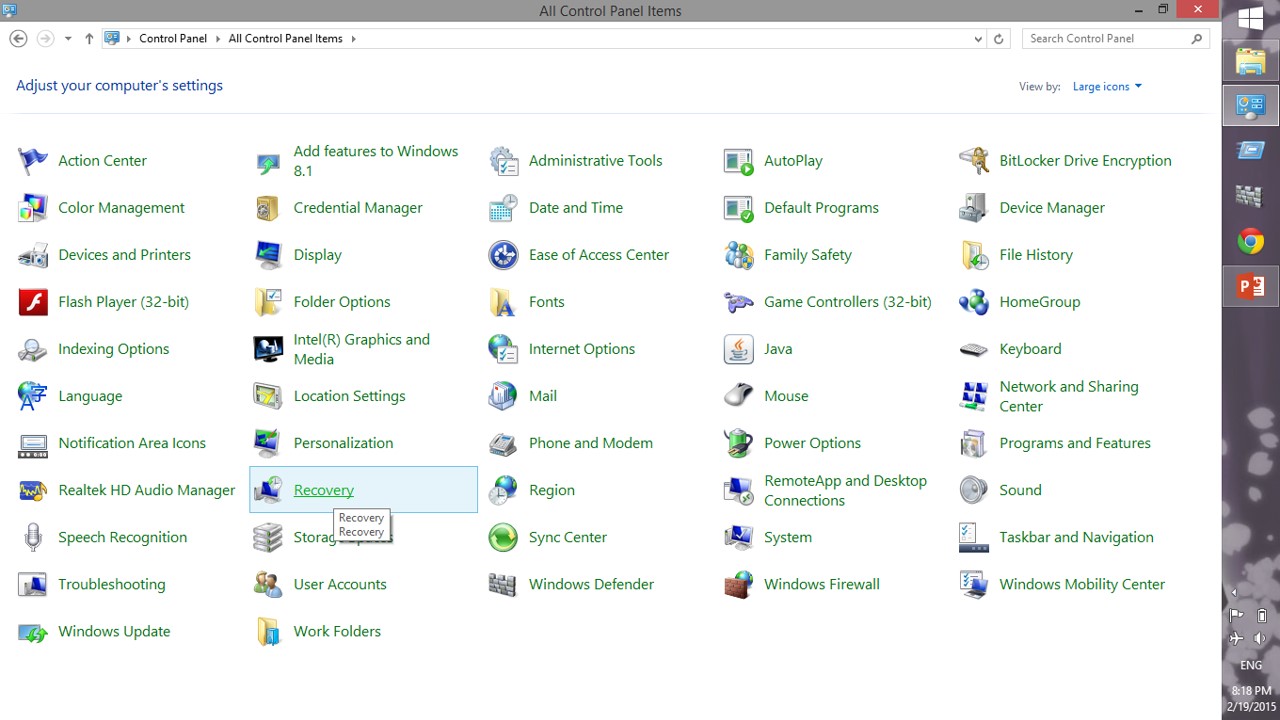 Step 7: Then, go to “RECOVERY” in control panel as shown