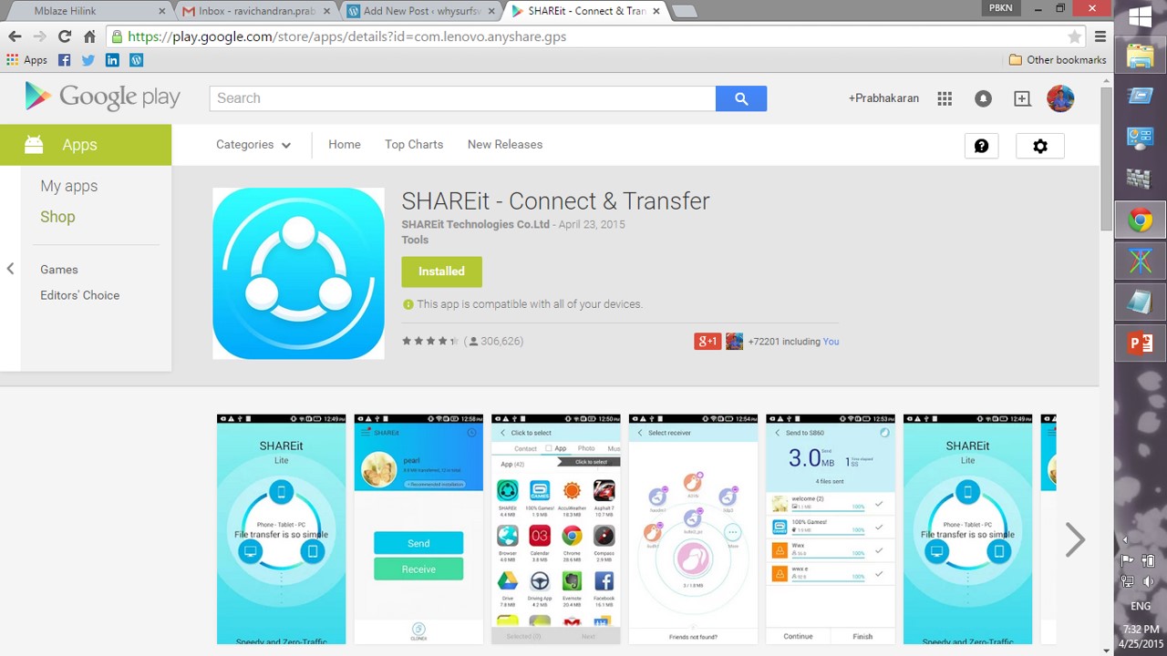 No.2: SHAREIT the wi-fi file transfer app, which powers you to transfer files at lightning speed