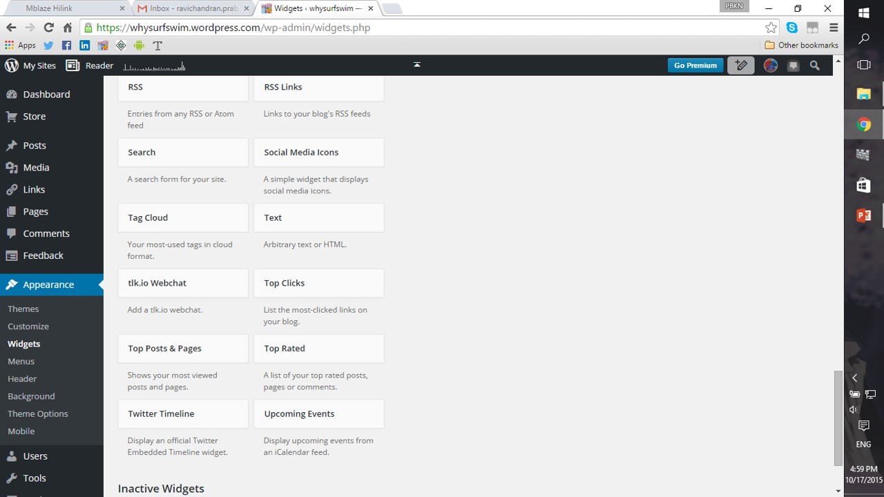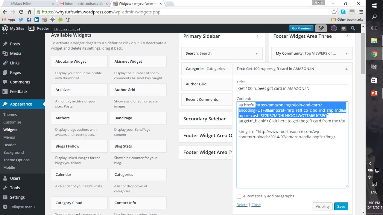 Step 1: Go to the “widgets” menu from “appearance” tab and select “Text” widget to embedded in your blog