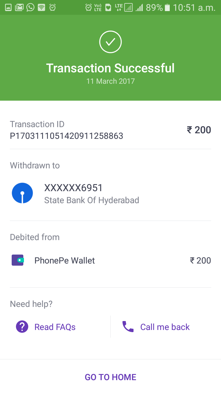 Step 3: Now, after sending the amount… you’ll find ₹200 cashback in your WALLET, now checkout your WALLET to your bank account, you’ll be credited ₹200 instantly