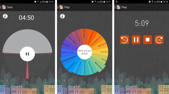 These vary in length from 5 to 30 minutes, and are divided by locations (such as at home or in the park), activities (such as eating or work break) and moods, so there’s sure to be at least one to suit your current needs. And if not there’s a solo meditation timer.