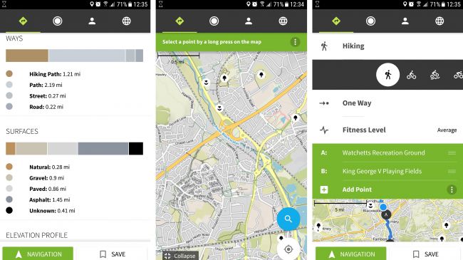 Enter a start and end point, an activity and a fitness level, and the app will present you with an appropriate route.