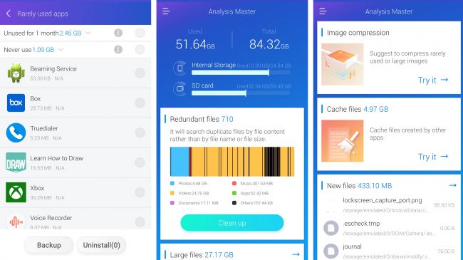 ES Disk Analyzer can find and delete duplicate files, compress images (and suggest large or rarely used ones that you might want to compress), highlight the size of cached files in apps and clear the cache from any or all of them, and display big files, new files and rarely used apps, in case any of them are expendable.