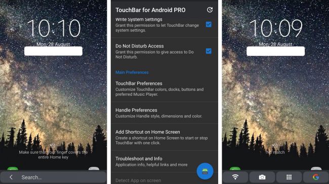 There’s a free version of the app, but that forces you to watch an advert video every time you change a customization setting, which gets old fast, so the $0.99/59p TouchBar for Android PRO is the better option.