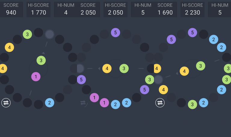 Put dots on the circle in a way that at least three of them have the same number and aren’t blocked by dots with another number.