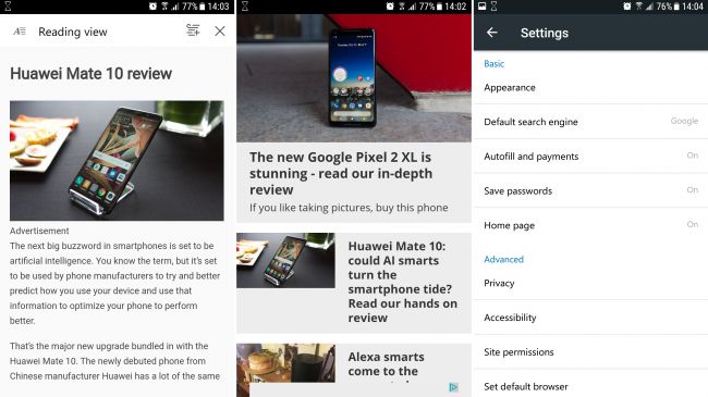 The ‘Preview’ in the name refers to the fact that the Microsoft Edge browser is still in beta, which is the only real mark against what’s generally a slick, good-looking mobile browser. This means it may not be entirely stable and bug-free just yet, but we haven’t experienced any issues.