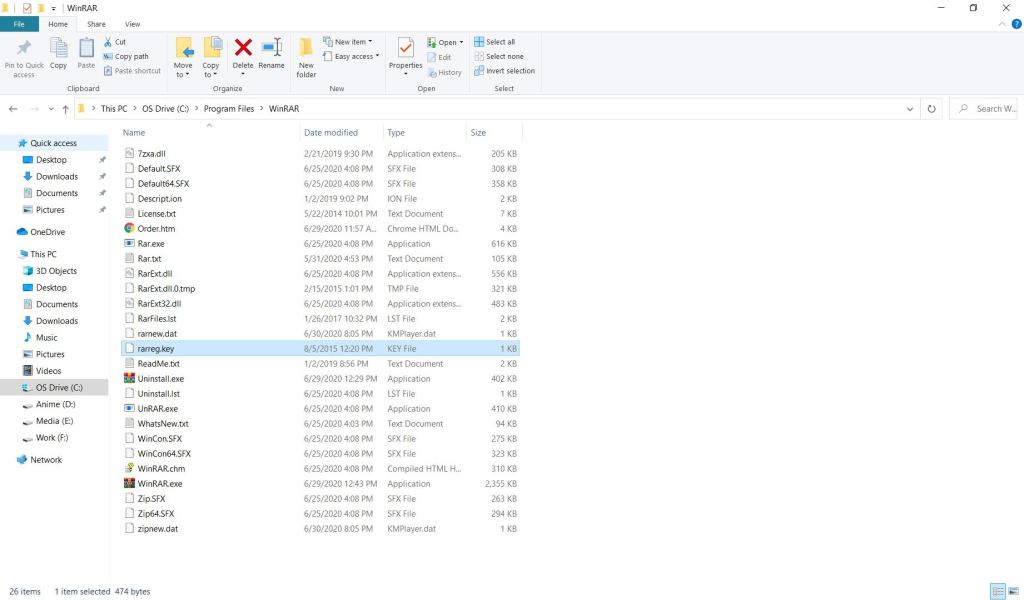 Copy & Replace the rarreg.key file in the path C:\Program Files\WinRAR