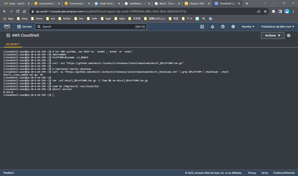 Open AWS Cloudshell and install eksctl (amd64)