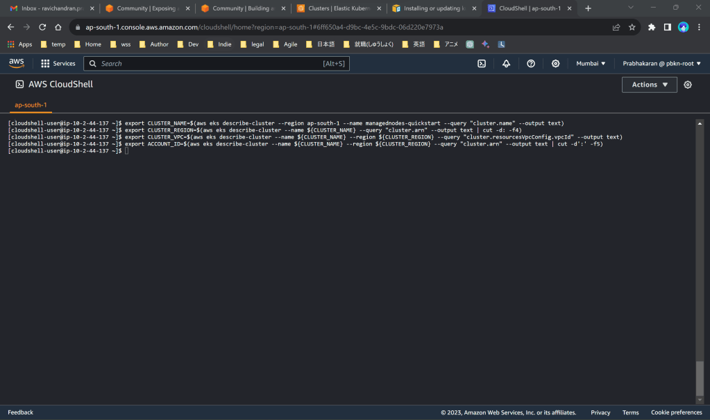export CLUSTER_NAME=$(aws eks describe-cluster --region ap-south-1 --name managednodes-quickstart --query "cluster.name" --output text)