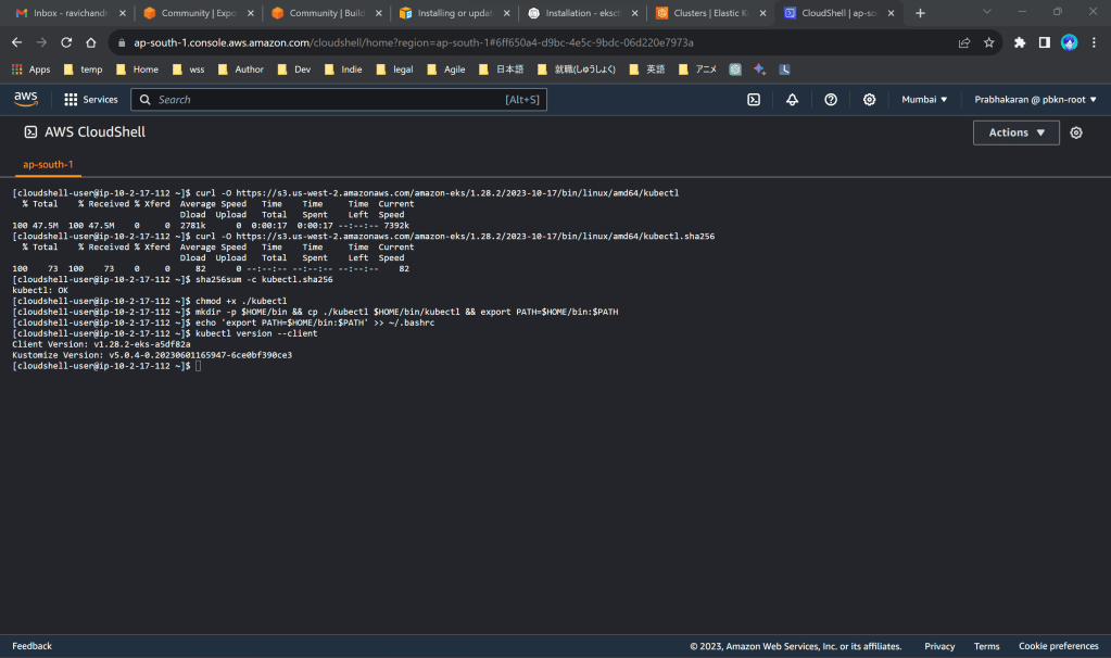 Copy commands from https://docs.aws.amazon.com/eks/latest/userguide/install-kubectl.html