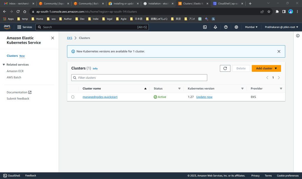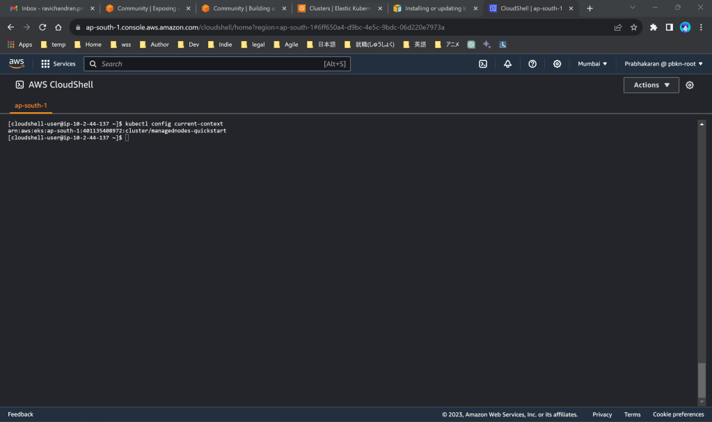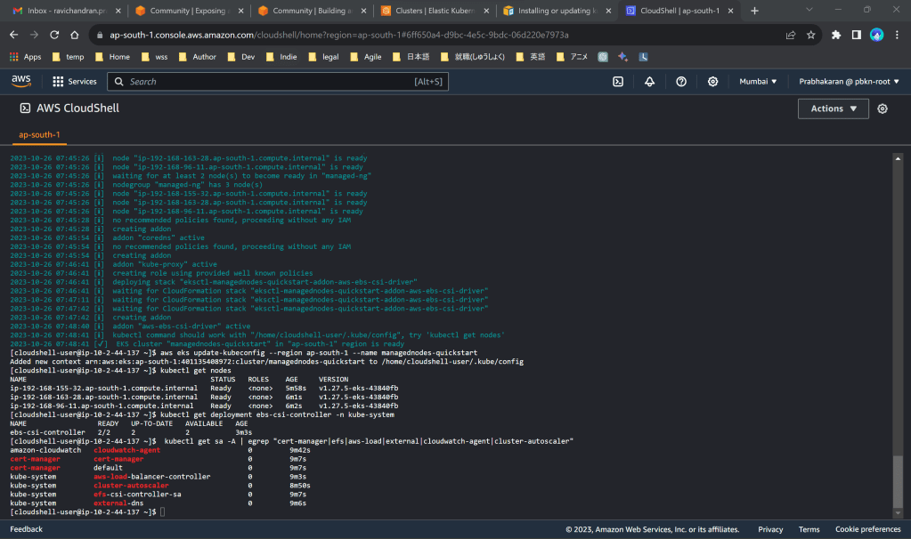 aws eks update-kubeconfig --region ap-south-1 --name managednodes-quickstart