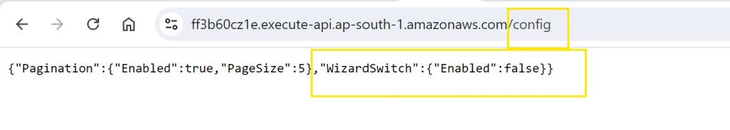 Hit the API endpoint again with the “/config” URL to verify the updated status of the feature flags.