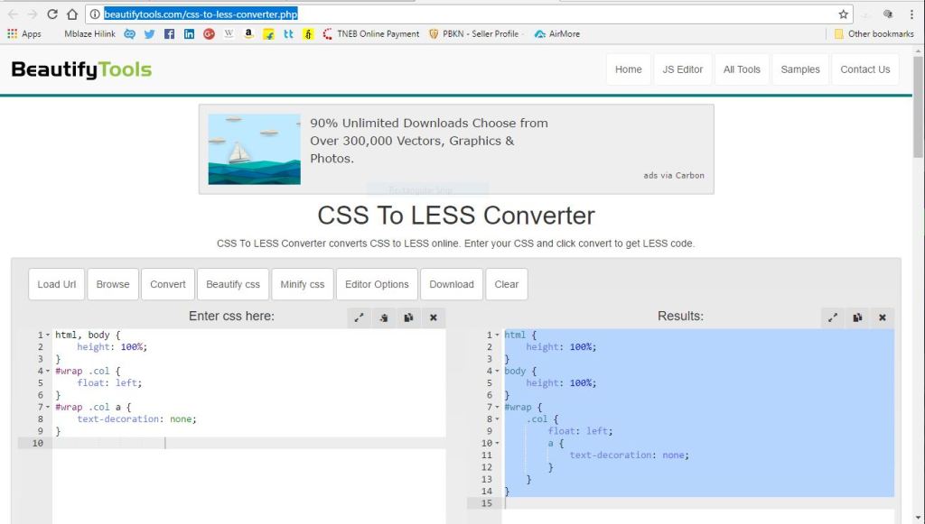 The fastest & easiest way to convert your CSS code to LESS format http://beautifytools.com/css-to-less-converter.php Convert your CSS code in no time… You can even align & shorten your CSS code here…