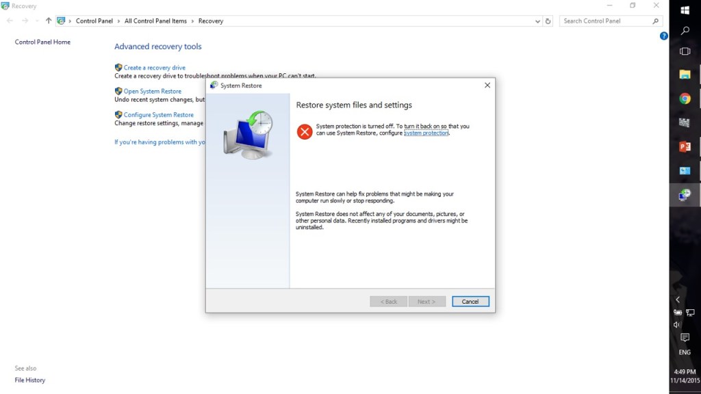 System Restore in WINDOWS 10