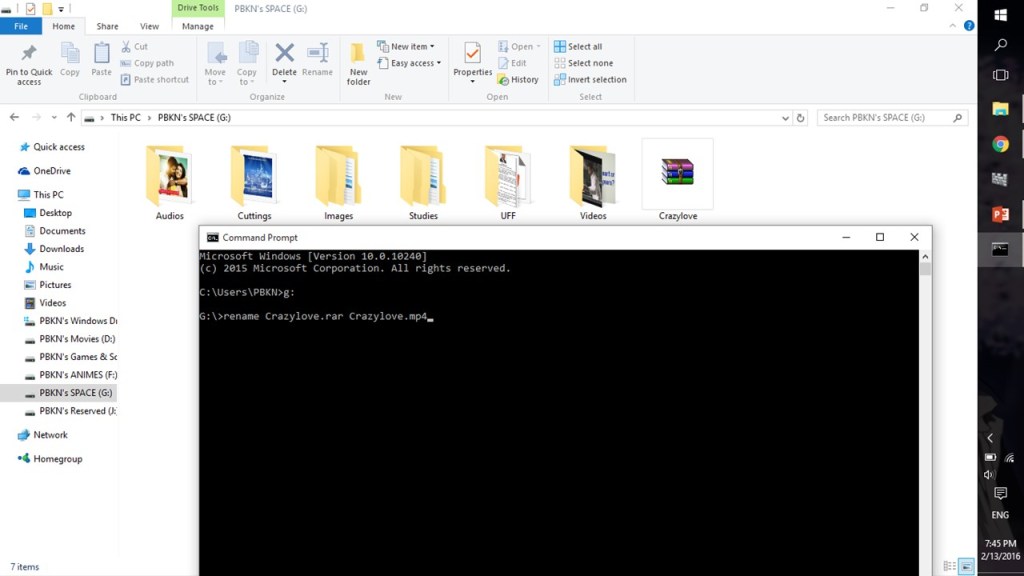 Hello everyone, This week we are gonna see, how to rename the extension/type of any file in your PC. Step 1: First locate the file… and note down it’s address Step 2: Rename it continuously (Eg: Crazylove) Step 3: Open command prompt and write down the address of the file (in my case “g:” )…